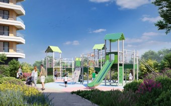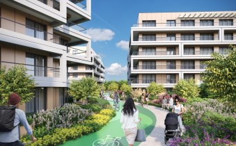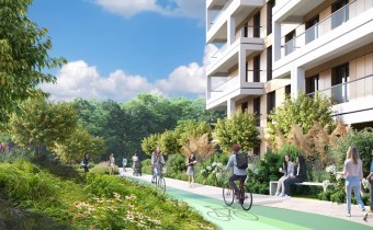 Drugi etap inwestycji wyróżnia się starannie zaprojektowaną przestrzenią wspólną, obejmującą ciągi pieszo-rowerowe, plac zabaw, pergole wypoczynkowe, tężnię solankową oraz liczne nasadzenia zieleni. Wszystko to tworzy harmonijne i przyjazne środowisko dla mieszkańców w każdym wieku.
