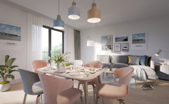 Nowoczesna inwestycja mieszkaniowa stworzona dla osób, które cenią komfort, przestrzeń oraz bliskość natury. Przytulne apartamenty położone są w otoczeniu zieleni i starannie zaprojektowanych stref rekreacyjnych, gdzie mieszkańcy mogą spacerować nad jeziorem z plażą, korzystać z placów zabaw dla dzieci oraz spędzać czas w przestrzeniach przeznaczonych do twórczych i aktywnych zajęć na świeżym powietrzu.