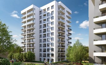 Pod względem architektonicznym inwestycja wyróżnia się nowoczesnym stylem: 11-piętrowy budynek z rytmicznie rozmieszczonymi balkonami, jasną elewacją przełamaną kontrastowymi elementami oraz geometrycznym muralem tworzy spójną i atrakcyjną wizualnie całość. Dla wygody mieszkańców zaplanowano garaż podziemny, naziemne miejsca postojowe oraz komórki lokatorskie.