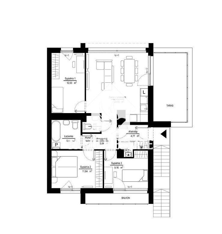 Balkon – dodatkowa przestrzeń zewnętrzna dostępna z sypialni.