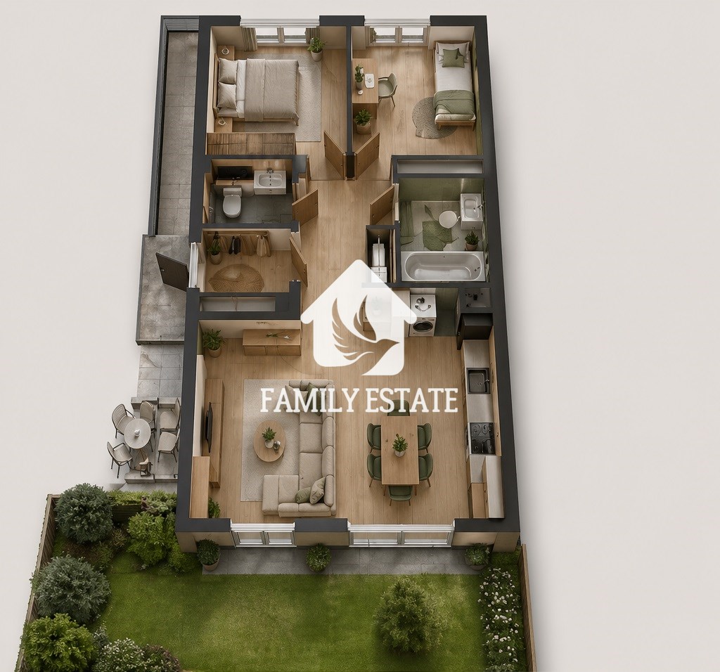 Ogródek/taras – dodatkowa przestrzeń na świeżym powietrzu do wypoczynku.